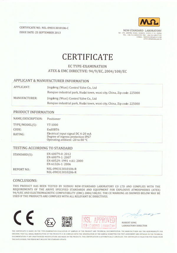 • Positioner CE Certificate